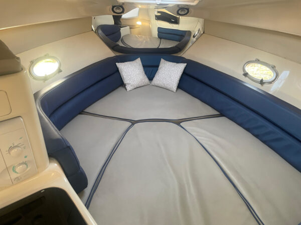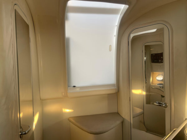 A poppa troviamo due porte, una dedicata al bagno e l’altra da accesso alla camera di poppa, che si sviluppa in un grande letto matrimoniale.