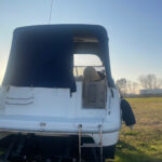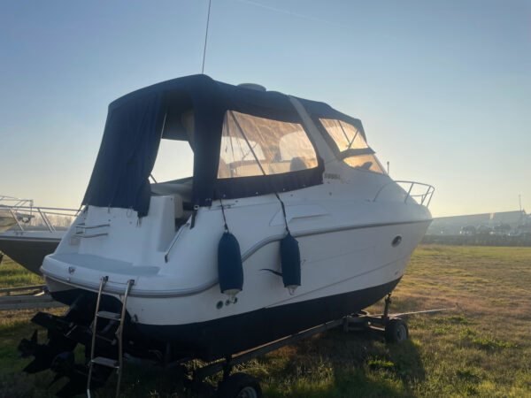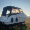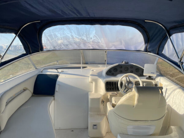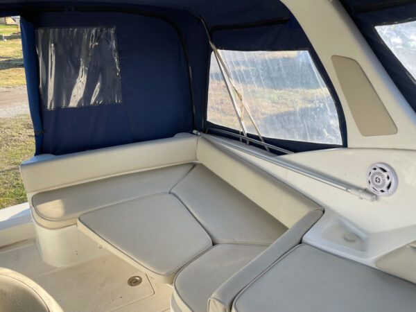 Il pozzetto è protetto da un tendalino sorretto dal rollbar in vetroresina e da archi inox, con la possibilità della chiusura laterale, in modo da trasformarsi in una completa chiusura camping.